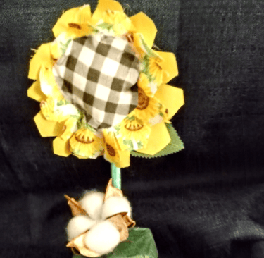 Now that you've understood why I've chosen these fabrics, it's time to consider the variety of flower shapes that are available. Fall is known for blooms like chrysanthemums, marigolds, sunflowers, and dahlias, all of which can be replicated with fabric. While you'll find many basic flower shapes in my designs, you'll also see that I offer a seasonal variety as well. This fall I'm showcasing sunflowers.